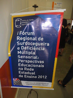 Além de palestras com profissionais que atuam com surdocegos e capacitam professores sobre deficiência múltipla sensorial, estiveram presentes a professora Tânia Regina Martins Rezende, responsável pelo departamento que produz materiais para pessoas cegas, surdocegas e com visão subnormal da Secretaria de Estado da Educação e a PCNP da Diretoria de Ensino da Região de Pindamonhangaba, Célia Gastaldo, uma das organizadoras deste fórum.